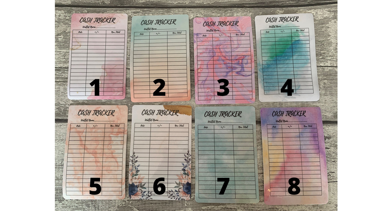 These packs of 5 laminated cash tracker sheets are the perfect addition to any budget binder. Simply write the amount added/withdrawn with a fine dry wipe pen, and add the tracker to your cash wallet to help keep on top of your savings