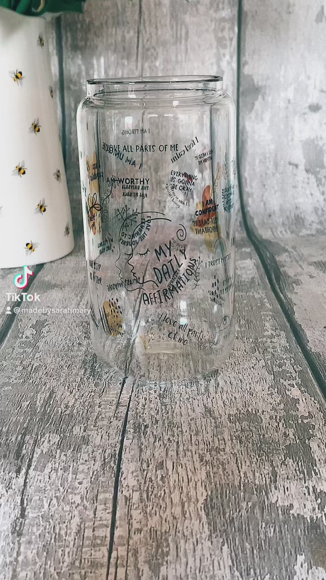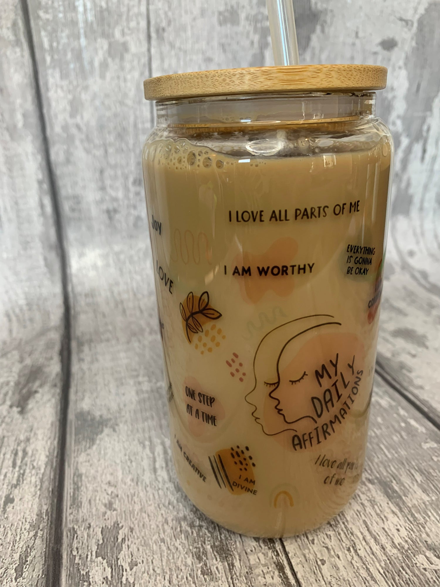 Daily Affirmations Glass Cup with Lid & Straw 16oz
