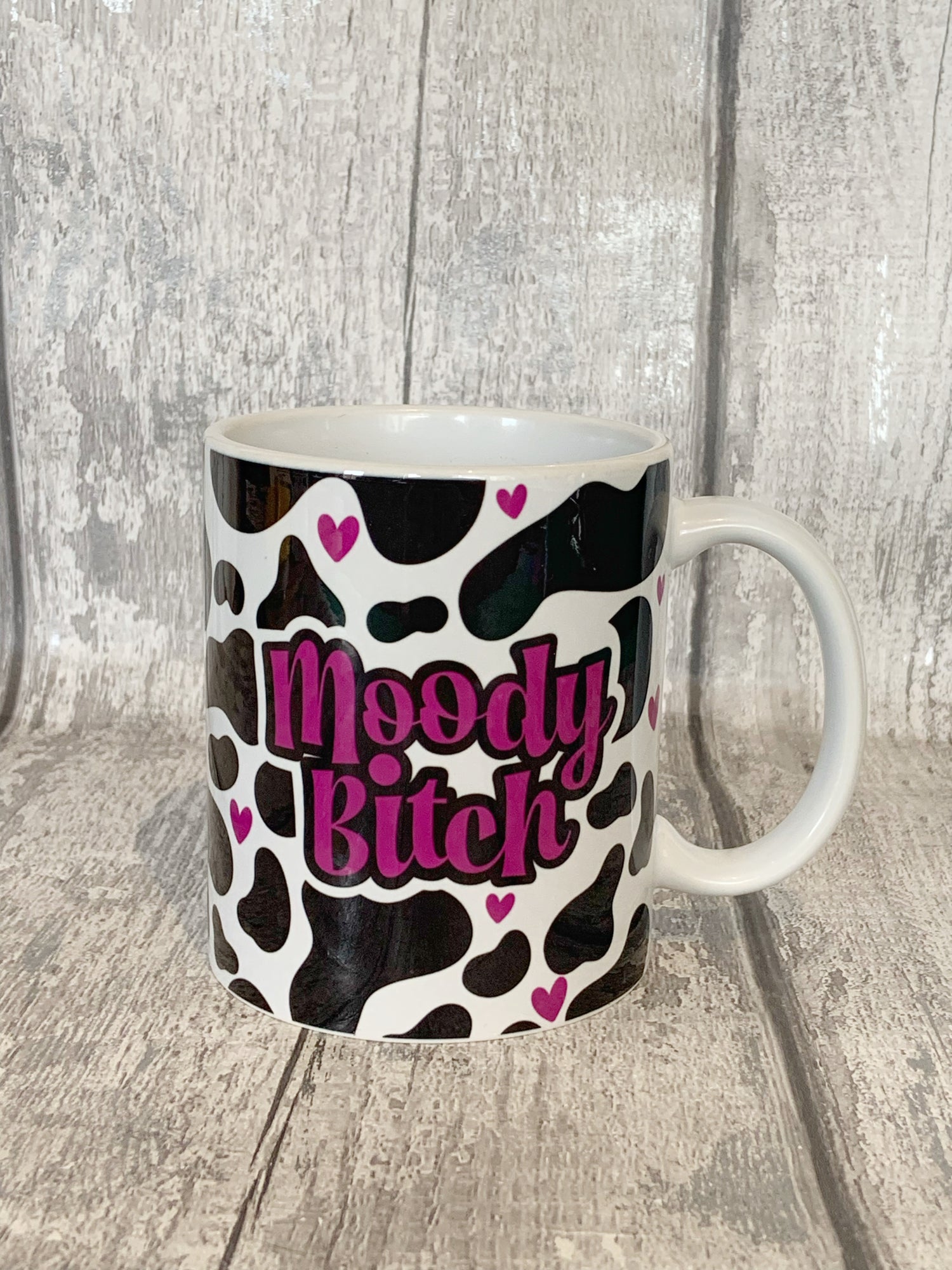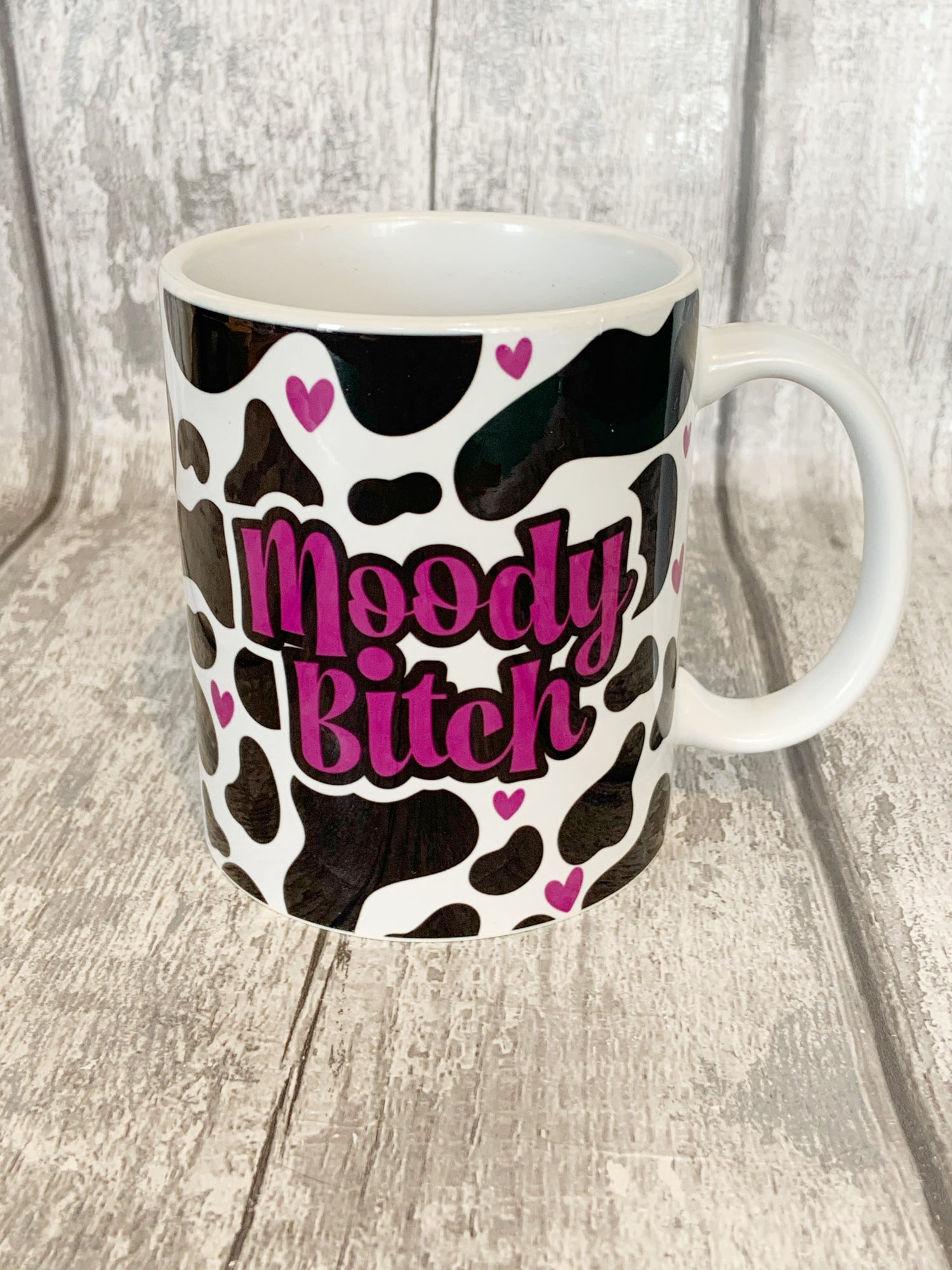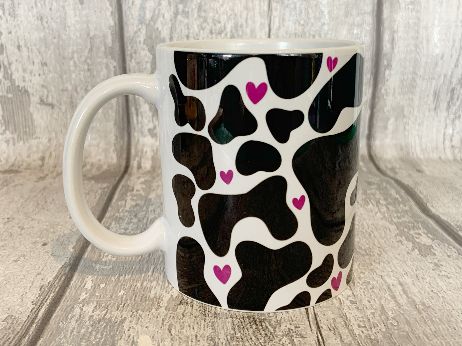 This gorgeous cow print & purple mug makes the perfect gift or treat for yourself. Featuring back and white cow print, purple hearts and purple wording.
