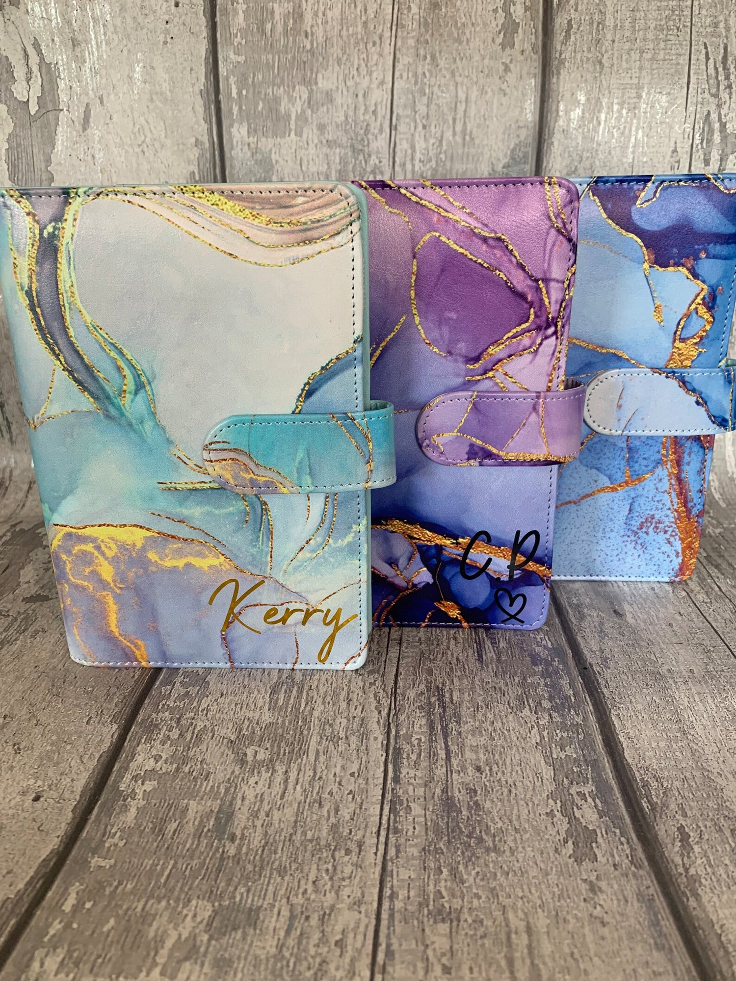 Personalised Bright Marble Budget Binder with 5 Cash Wallets
