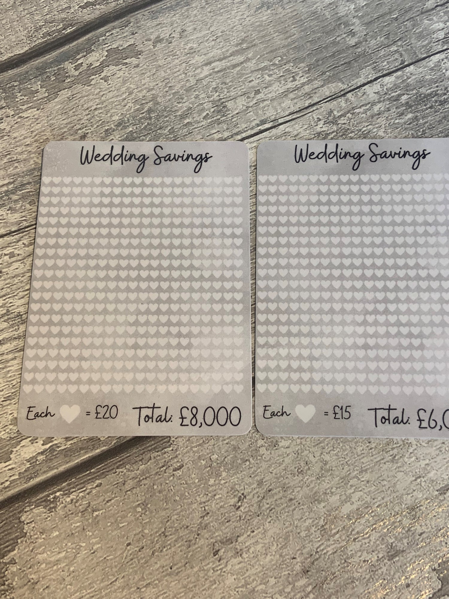 These wedding savings challenges are the perfect way to put money aside for your big day! Simply fill in a heart for each note added, and keep track of your savings at a glance. A great way to keep motivated and plan ahead.