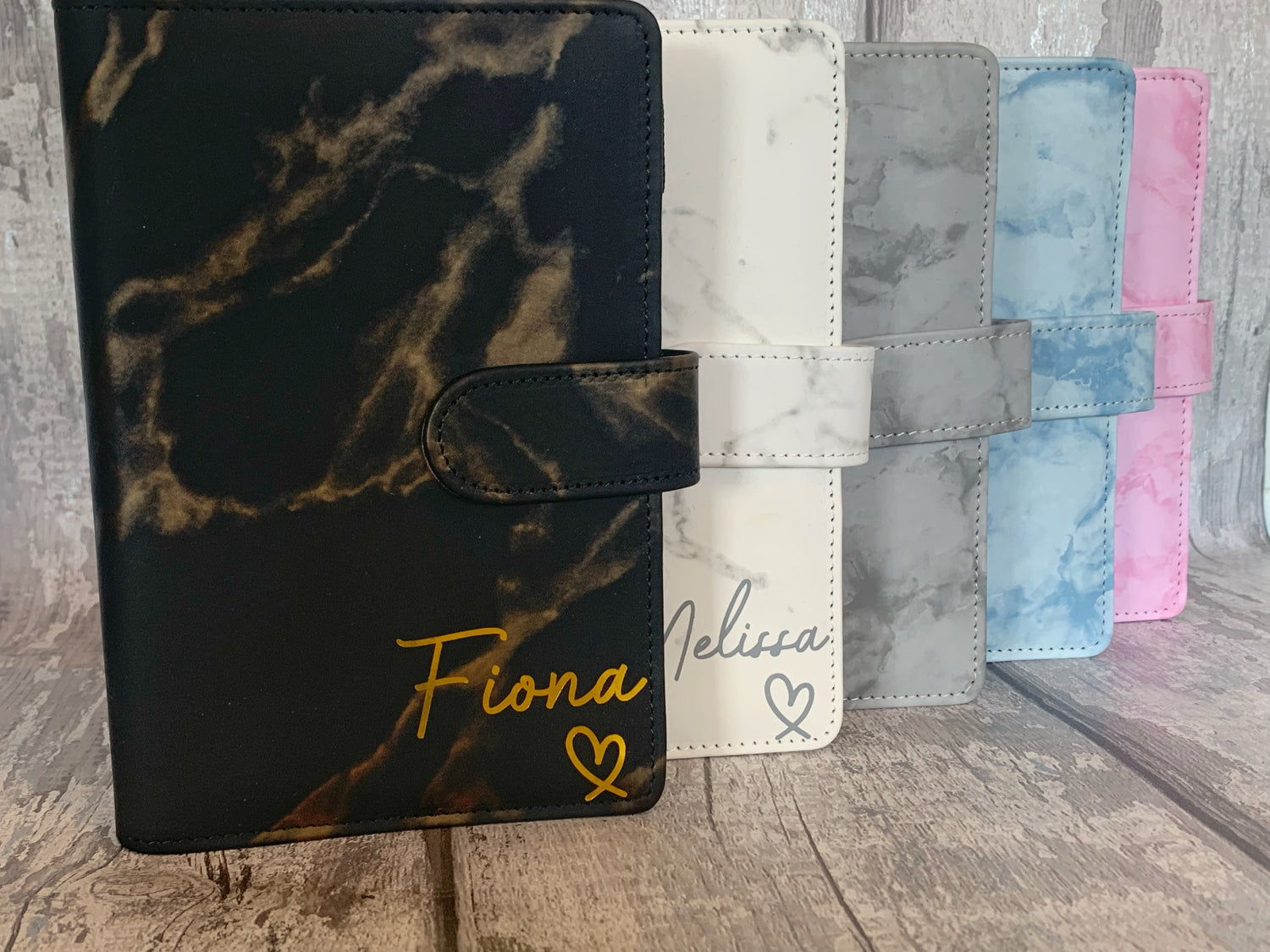 Personalised Marble Budget Binder with 5 Cash Wallets